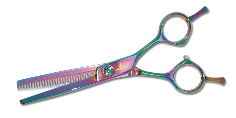 Offset handle with fixed finger rest and convex edge blade. 25 teeth texturized with cutting Ratio of 18% excellent for Texturizing and thinning.