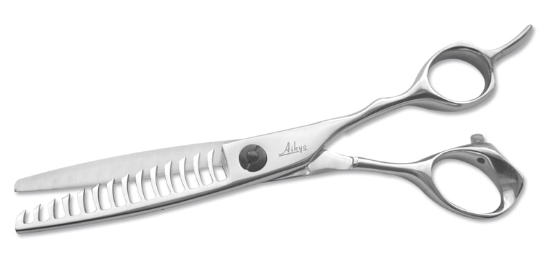 Offset, Anatomic Wide Thumb, Handle style for comfort with Super convex double sided thinning blades for smooth blending and texturizing
